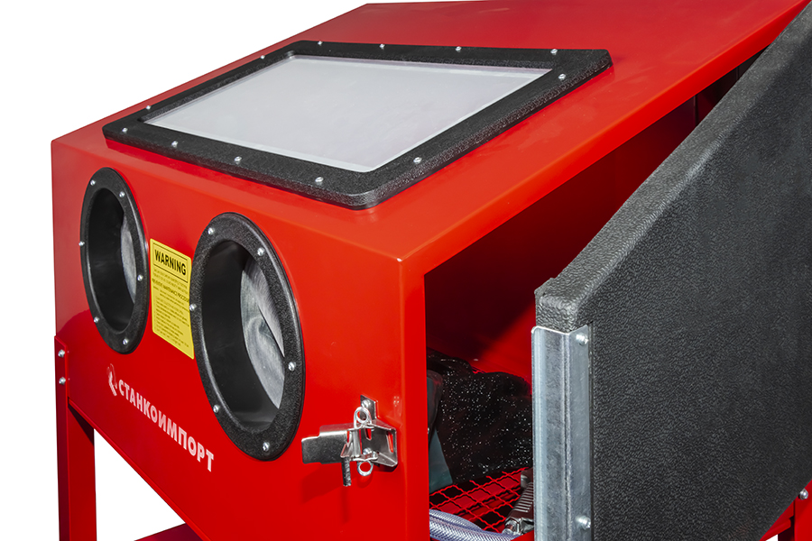 Пескоструйная камера подходит для обработки различных деталей и предназначена для снятия грунта, краски, ржавчины. Позволяет производить обработку изделий и инструментов без создания специального пространства и дополнительной защиты оператора. В верхней части располагается прозрачное стекло для обзора детали. Для работы необходимо подключитель изделие к системе подачи сжатого воздуха.